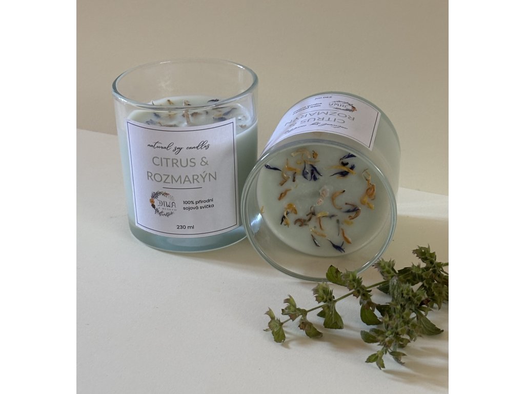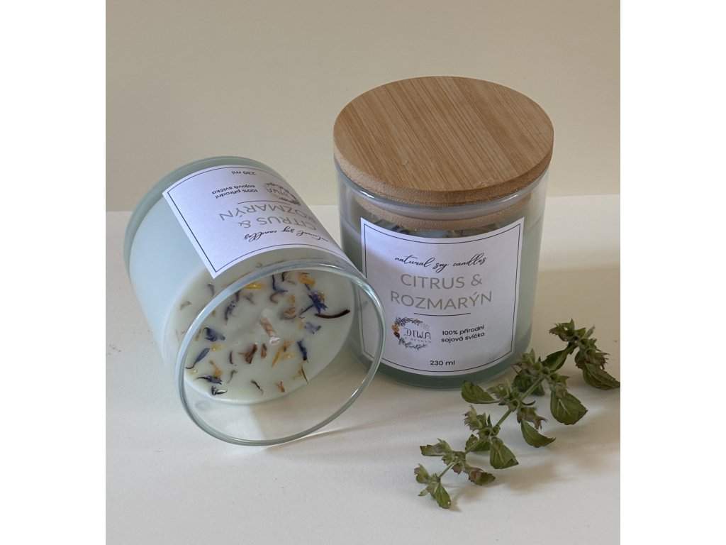Svíčka je vyrobena ze 100% přírodního sójového vosku, s esenciálními oleji bez chemických příměsí. Ručně odlévaná v Česku, ekologická alternativa parafínových svíček.