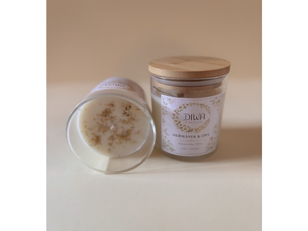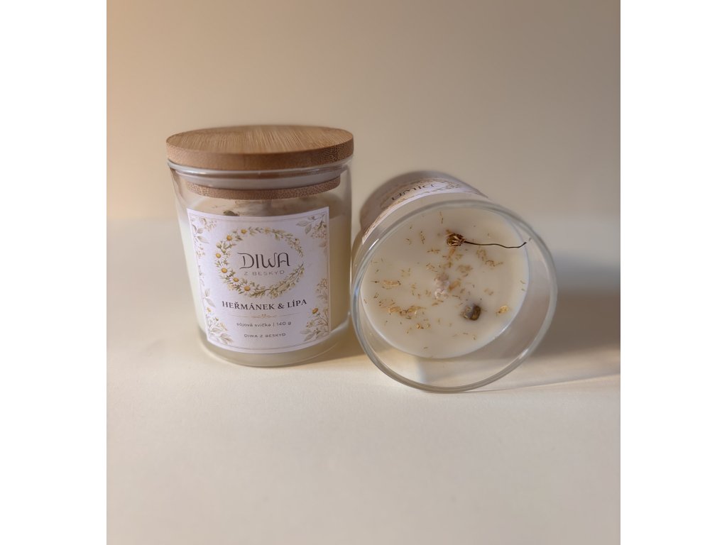 Složení: 100% sójový vosk, EO Heřmánek, EO, Lípa
