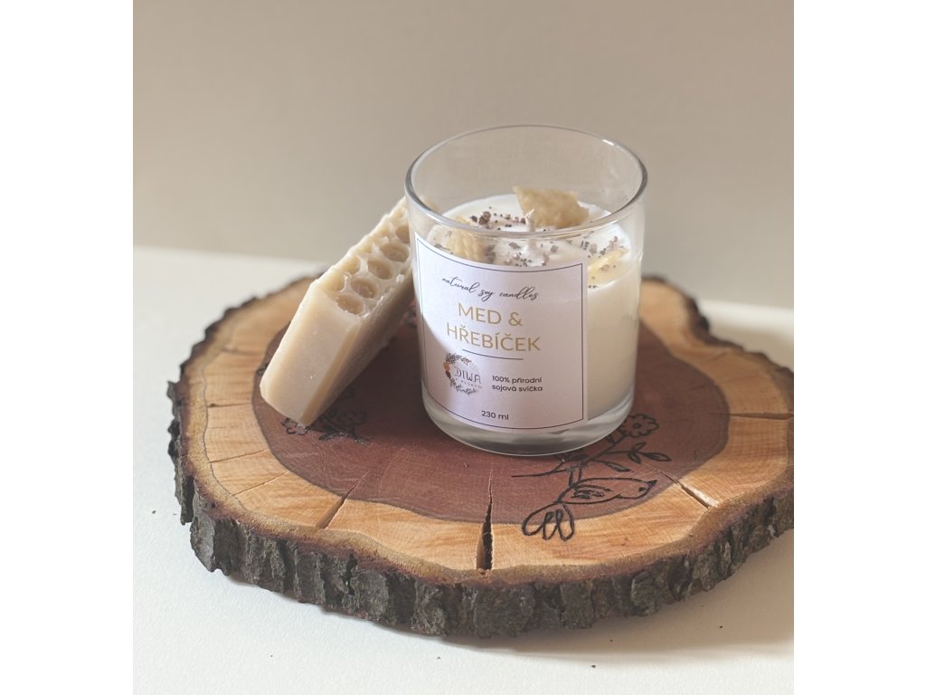 Dárkový balíček, který obsahuje: ručně vyráběné prkýnko, svíčku Med&Hřebíček + Medové mýdlo.